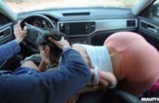 ワイルドなブロンドが車の中で人前でフェラチオ